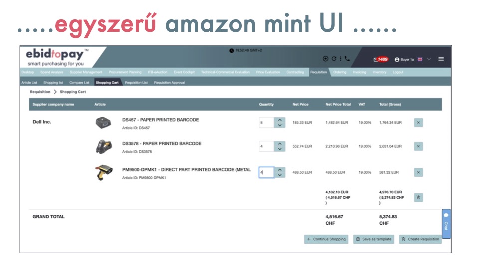 - egy igénylés egy "kattintással" átfordítható RFQ-ba vagy fordított aukcióba.